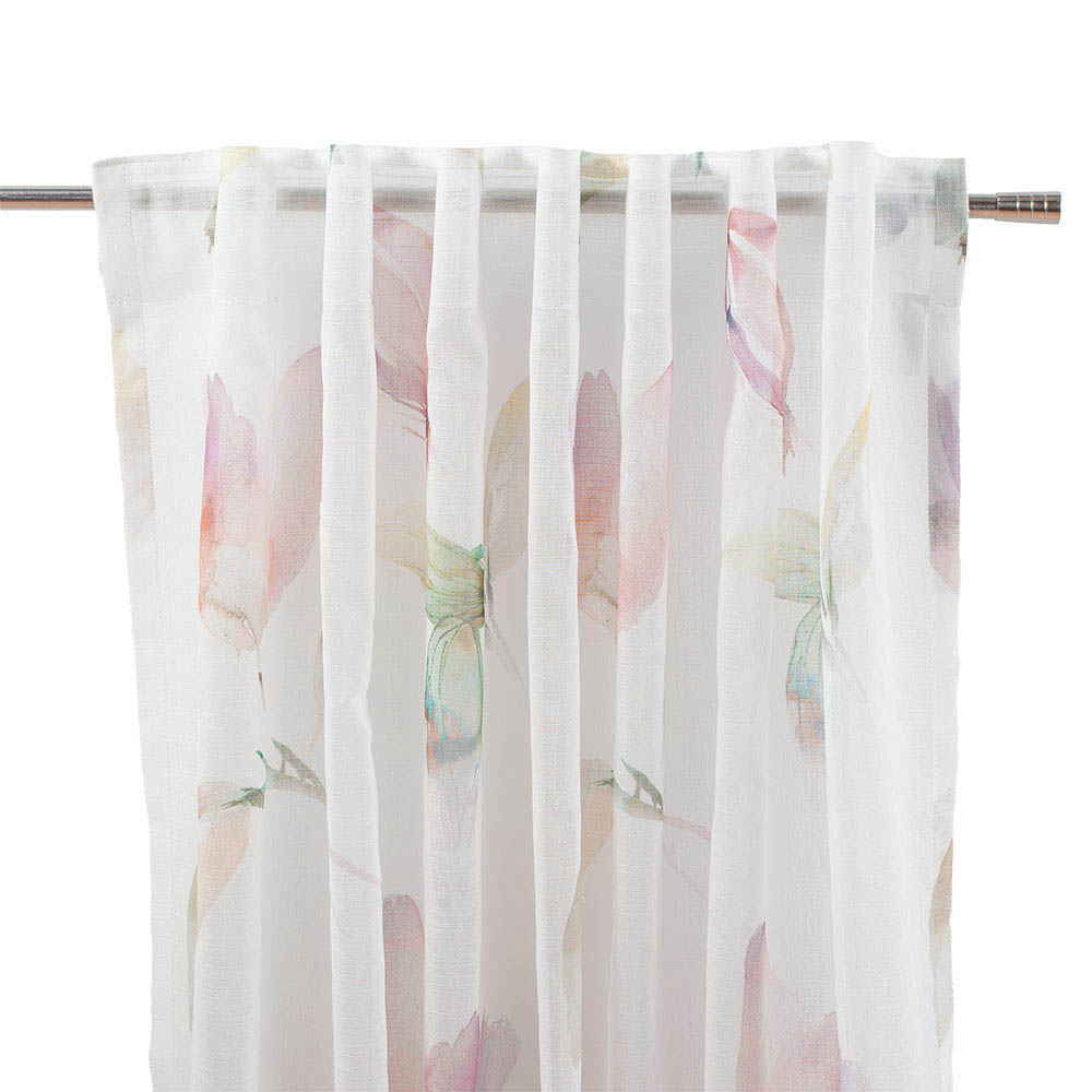 Der Fertigschal Verdi im floralen Blumenmuster auf weißer Grundfarbe setzt elegante und freundliche Akzente im Raum. Mit einer Breite von 140 cm und einer Höhe von 245 cm eignet er sich für unterschiedliche Fenstergrößen. Dank der klassischen Aufhängung ohne Ösen lässt sich der Schal flexibel anbringen und sorgt für einen gleichmäßigen Faltenwurf. Das leichte Gewebe bringt Helligkeit in den Wohnbereich und schafft eine einladende Atmosphäre.