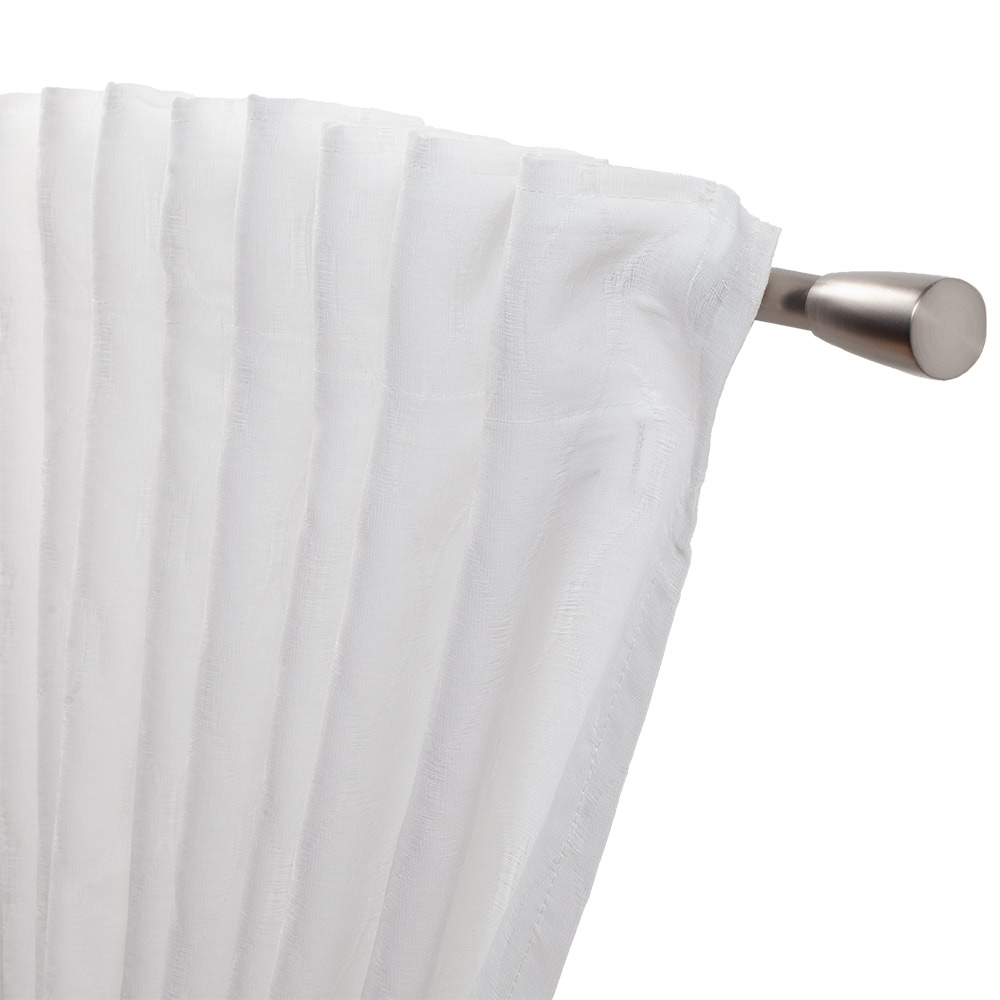 Der Fertigschal Hometime in unifarbenem Weiß bringt zeitlose Eleganz und Leichtigkeit in jeden Wohnraum. Die halbtransparente, gewebte Stoffstruktur lässt viel Tageslicht herein und sorgt für eine freundliche Atmosphäre. Ein dezentes, eingewebtes Wellenmuster verleiht dem Vorhang eine stilvolle und moderne Note. Mit einer Breite von 140 cm und einer Höhe von 255 cm eignet sich der Schal für gängige Fenstermaße. Dank des praktischen Durchschubbandes lässt sich die Gardine einfach an gängigen Gardinenstangen anbringen. Der Fertigschal fügt sich harmonisch in unterschiedliche Einrichtungsstile ein und rundet jedes Raumkonzept elegant ab.