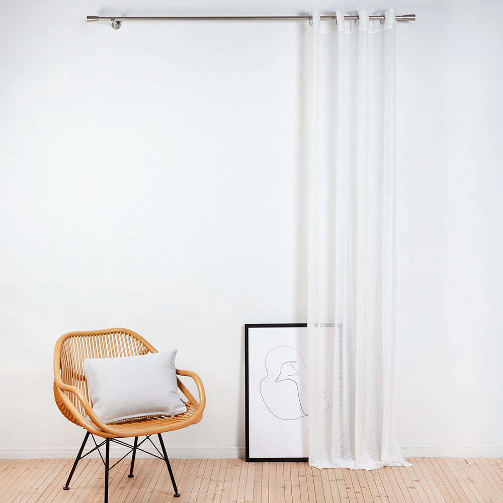 Natürlicher Charme zieht hier ein - mit dem cremefarbigen Fertigschal Bravon! Mit seiner unifarbenen Optik und einer gleichmäßigen, netzartigen Struktur verleiht der Stoff eine leichte, luftige Wirkung. Die halbtransparente Qualität lässt angenehm viel Tageslicht in den Raum und sorgt gleichzeitig für einen dezenten Sichtschutz. Mit seinem natürlich anmutenden Charme fügt sich der Vorhang harmonisch in moderne wie auch klassische Wohnkonzepte ein. Bei einer Breite von 135 cm und einer Höhe von 245 cm eignet sich Bravon ideal für Fenster und Terrassentüren. Dank der praktischen Ösenaufhängung lässt sich der Vorhang schnell und unkompliziert anbringen.