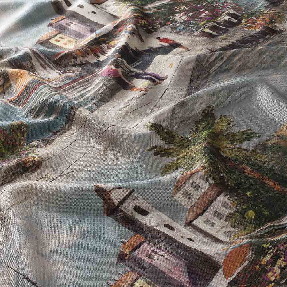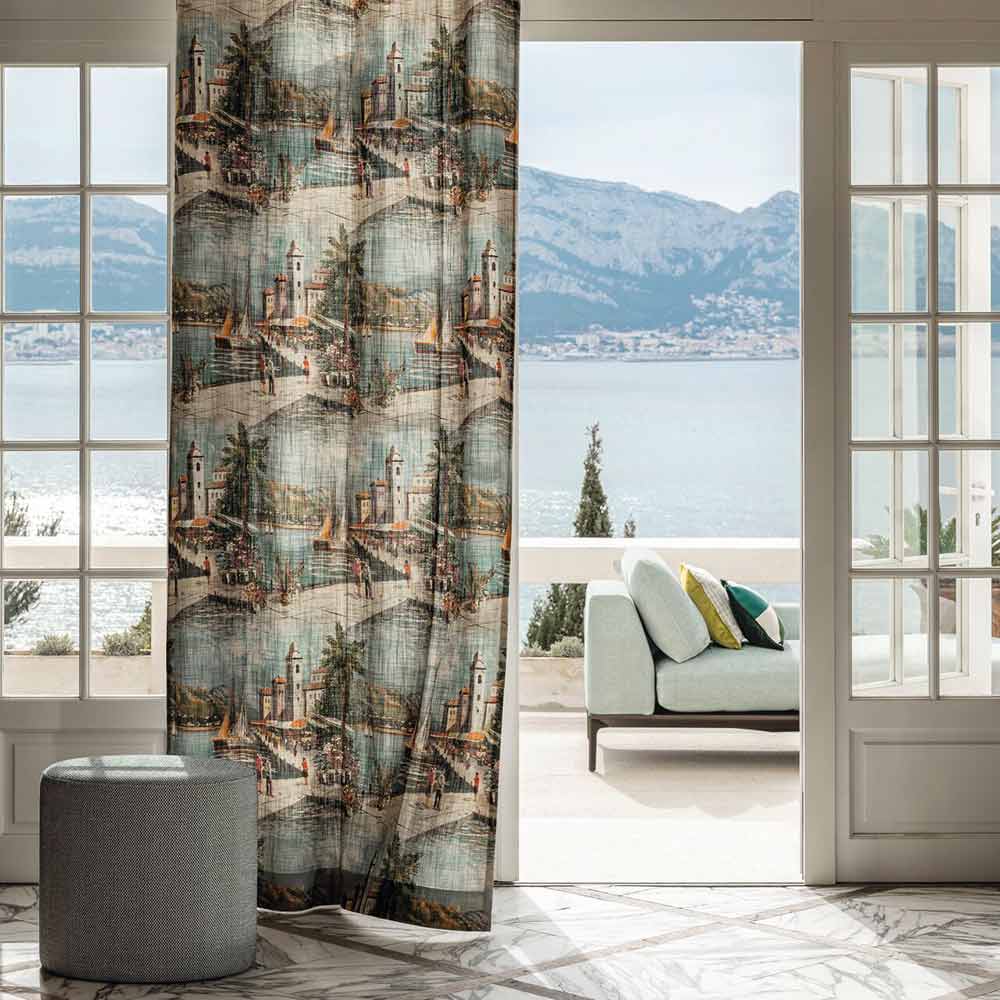 Der Dekostoff "Love the Live" von Carlucci sorgt für mehr Gemütlichkeit bei Ihnen zu Hause. Der hochwertige Vorhangstoff hat einen großen Druck mit einer Hafenstadt im Leinwandllook. Zugleich bietet der blickdichte Vorhangstoff einen Sonnen- und Sichtschutz und ist besonders gut für Wohnräume geeignet. Sie können mithilfe des Vorhangs-Konfigurators den Dekostoff an Ihre individuellen Maße anpassen und das Gardinenaufhängungssystem nach Ihren Bedürfnissen gestalten. Die Stoffe werden in unserer hauseigenen Näherei nach Ihrem Wunschmaß gefertigt.