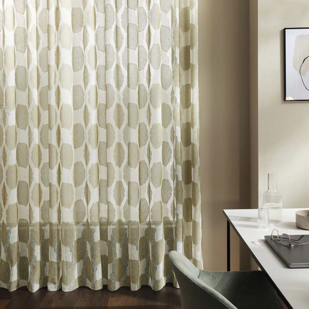 Der Dekostoff "Chains" von JAB sorgt für mehr Wohnlichkeit bei Ihnen zu Hause. Der halbtransparente Vorhangstoff fällt durch sein grün weißes Punktemuster garantiert auf. Sie können mithilfe des Vorhangs-Konfigurators den Dekostoff an Ihre individuellen Maße anpassen und das Gardinenaufhängungssystem nach Ihren Bedürfnissen gestalten. Die Stoffe werden in unserer hauseignen Näherei nach Ihrem Wunschmaß gefertigt.