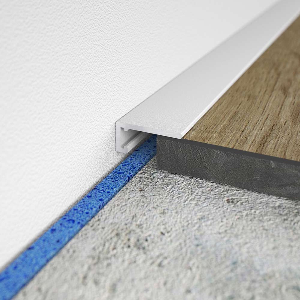 Die dezente und innovative Lösung für einen Abschluss. Das Abschlussprofil AL16X5 in Weiß ist geeignet für Parkett, Laminat, Designböden, Fliesen und Spachtelboden mit einer Bodenstärke ab 5 mm. Ein dezenter Bodenabschluss zur Wand, Fensterrahmen oder Treppenstufe mit einer Anschlussfuge von 5 bis 13 mm. Sobald Ihre Wände gestrichen sind und der Boden verlegt, könne Sie das System werkzeuglos und schnell montieren. Für die einfache Montage benötigen Sie die Montageclips, zusätzlich können Sie sich die Montage erleichtern mit der Montagehilfe MH100 und der Schnitthilfe SH300.