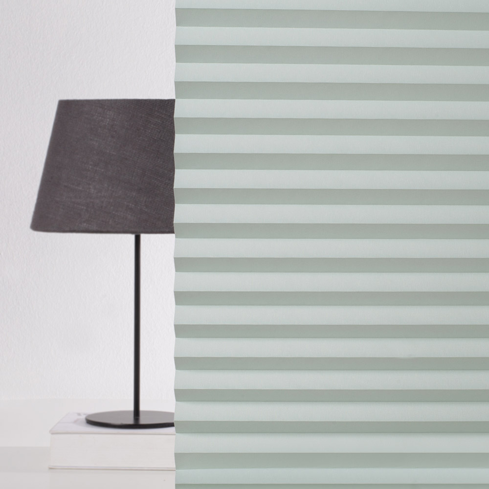 Dieses Plissee sorgt für mehr Wohnlichkeit bei Ihnen zu Hause! Das mintfarbene Plissee fügt sich problemlos in viele Einrichtungsstile ein und eignet sich für Wohn- und Feuchträume. Der blickdichte Plisseestoff aus 100% Polyester eignet sich durch eine Perl-Sonnenschutzbeschichtung besonders gut für Kinder- und Schlafzimmer, da es für einen effektiven Sonnen- und Hitzeschutz sorgt. Gleichzeitig wird ausreichend Sonnenlicht durchgelassen, sodass ihre Räume weiterhin angenehm hell und einladend wirken. Mithilfe unseres Konfigurators können Sie das Plissee an Ihre individuelle Wunschmaße anpassen. Das Plissee ist bei 30 °C Handwäsche zu reinigen.
