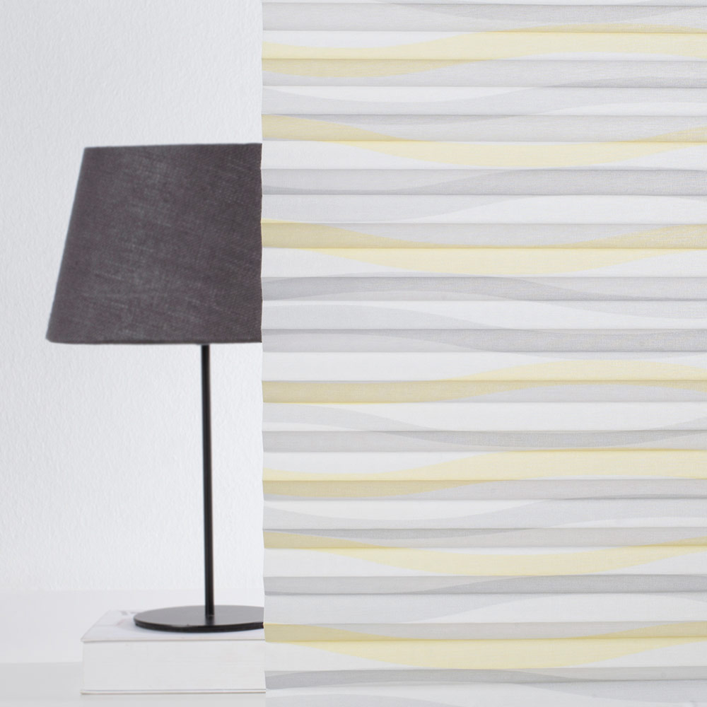 Dieses Plissee sorgt für mehr Wohnlichkeit bei Ihnen zu Hause! Das gelbe Plissee mit einem besonderen Muster ist ein echter Hingucker. Es fügt sich problemlos in viele Einrichtungsstile ein und eignet sich für Wohn- und Feuchträume. Der halbtransparente Plisseestoff aus 100% Polyester bietet einen leichten Sonnen- und Sichtschutz und lässt gleichzeitig Sonnenstrahlen durchdringen, um Ihre Räume zu erleuchten. Mithilfe unseres Konfigurators können Sie das Plissee an Ihre individuelle Wunschmaße anpassen. Das Plissee kann durch feuchtes Abwischen sanft gereinigt werden.