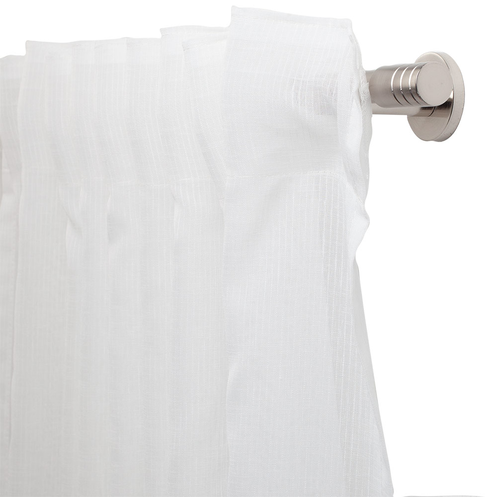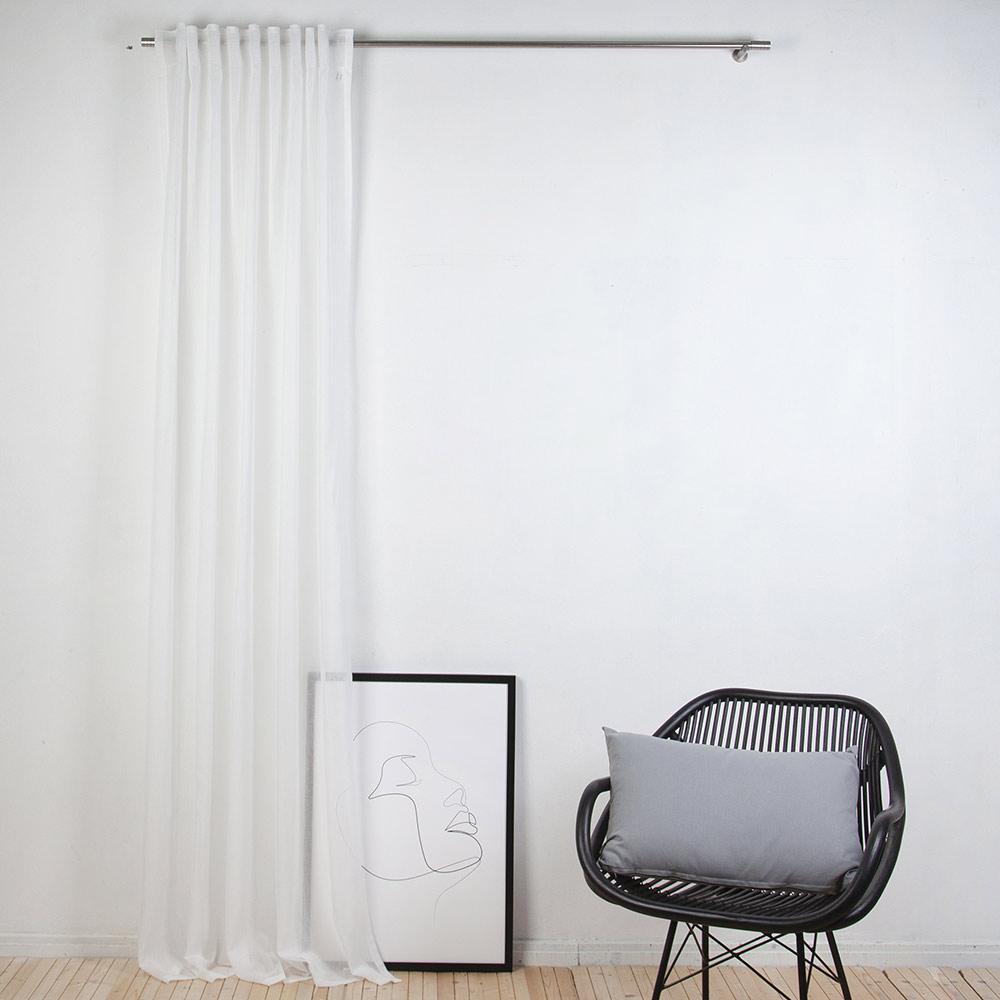 Dezent aber stilsicher - ist der Vorhang Faria! Der transparente weiße Fertigschal ist kleidsam an jedem Fenster und lässt sich sehr gut mit anderen Vorhängen oder anderem Sonnenschutz wie z.B. einem Plissee oder Rollo kombinieren. Der Vorhang ist 140cm breit und 2450cm hoch. Mit dem integrierten Durchschubband lässt er sich auch problemfrei aufhängen, entweder direkt auf Ihrer Gardinenstange schieben oder sie nutzen Gardinenhäkchen oder -röllchen.