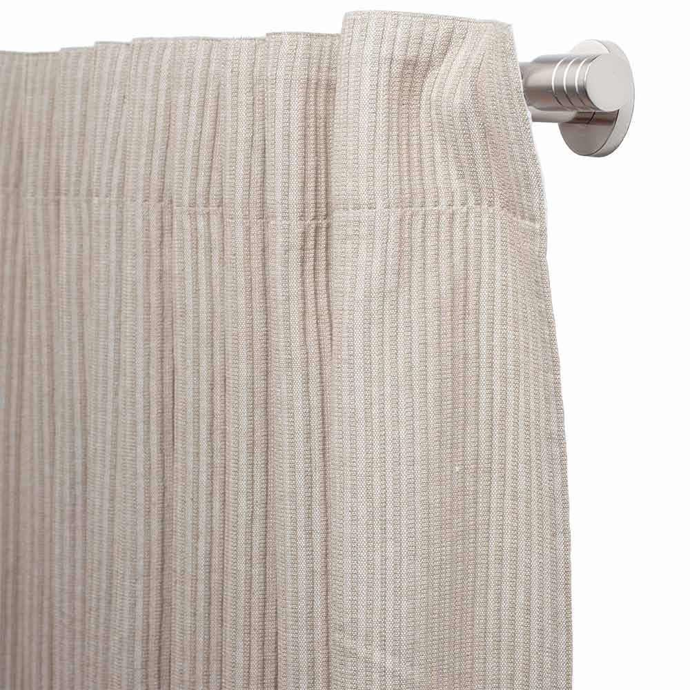 Der unifarbene Vorhang Kampen in beige verleiht Ihrem zu Hause mehr Wohnlichkeit. Das blickdichte Material wurde aus 100 % Baumwolle gewebt. Zum Anbringen der Gardine wurde ein Durchschubband verarbeitet, so könne Sie die Raffung an Ihre Wünsche anpassen. Zusätzlich erhalten Sie ein Bügelband, um den Vorhang individuell zu kürzen. Die Maße des Schals sind 145 x 270 cm.